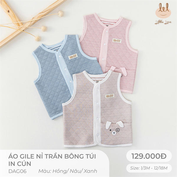 Áo gile nỉ trần bông túi in cún dành cho bé Lil little Love (DAG06)
