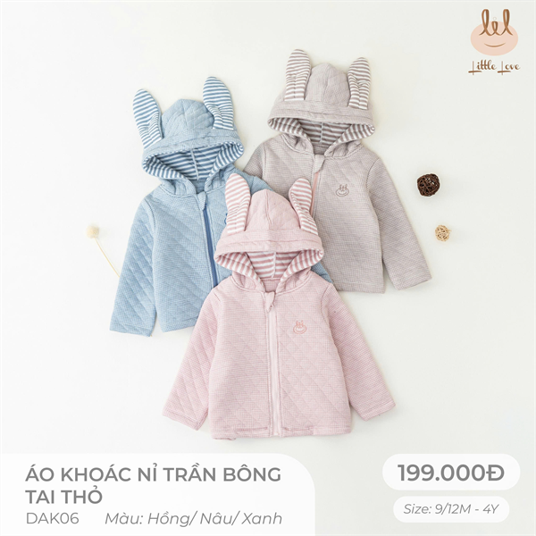 Áo khoác nỉ trần bông tai thỏ dành cho bé LIl LITTLE LOVE (DAK06)