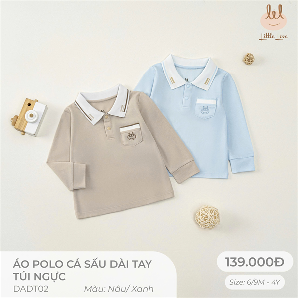 Áo Polo cá sấu dài tay túi ngực dành cho bé Lil Little Love (DADT02)