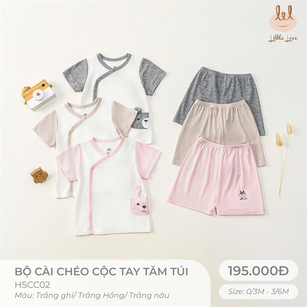 BỘ CÀI CHÉO CỘC TAY CHẤT LIỆU THUN TĂM PHỐI TÚI [ SIÊU MỀM, MÁT, MỊN CO DÃN VÀ THẤM HÚT TỐT] SZ 0/3M - 3/6M (HSCC02)