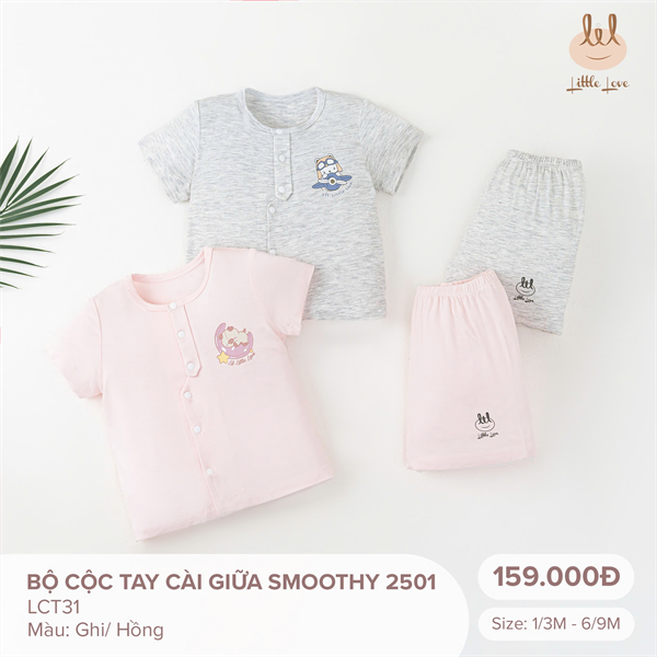 BỘ CỘC TAY CÀI GIỮA VẢI SMOOTHY [ SIÊU MỀM, MÁT, MỊN CO DÃN VÀ THẤM HÚT TỐT] TRẮNG PHỐI SZ 1/3M - 6/9M (LCT31)