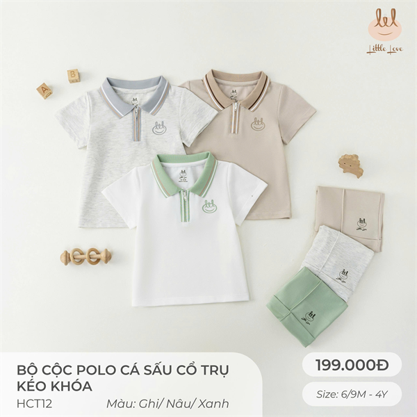 BỘ CỘC TAY POLO DA CÁ CỔ TRỤ KÉO KHÓA [ SIÊU MỀM, MÁT, MỊN CO DÃN VÀ THẤM HÚT TỐT] SZ 6/9M - 4Y (HCT12)