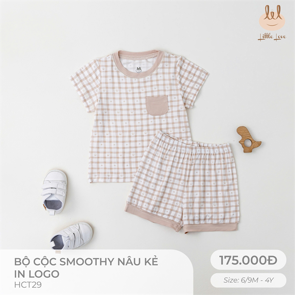 BỘ CỘC TAY VẢI SMOOTHY KẺ NÂU IN LOGO [ SIÊU MỀM, MÁT, MỊN CO DÃN VÀ THẤM HÚT TỐT] SZ 6/9M - 4Y (HCT29)