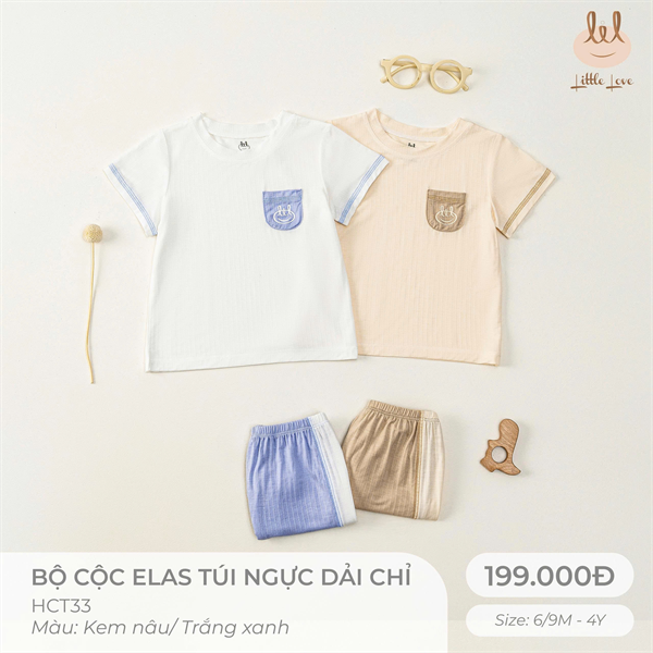 BỘ CỘC VẢI ELAS TÚI NGỰC DÀI CHỈ [ SIÊU MỀM, MÁT, MỊN CO DÃN VÀ THẤM HÚT ] SZ 6M -4Y (HCT33)