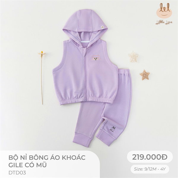 Bộ gile nỉ bông áo khoác có mũ dành cho bé Lil Little Love (DTD03)