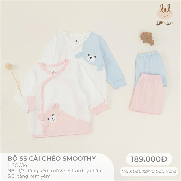 Bộ quần áo cài lệch chất liệu smoothy cho bé từ 0-6 tháng little love (HSCC14) TẶNG KÈM BAO CHÂN,TAY HOẶC YẾM