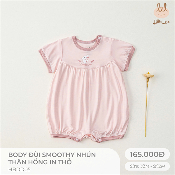 BODY ĐÙI SMOOTHY NHÚN THÂN HỒNG IN THỎ [ SIÊU MỀM, MÁT, MỊN CO DÃN VÀ THẤM HÚT TỐT] SZ 0/3M - 9/12M (HBDD05)
