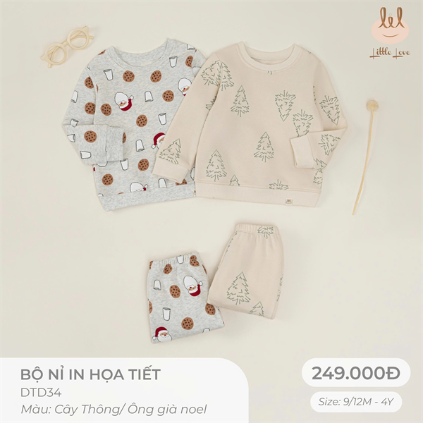 [BST NOEL 2025] Bộ nỉ họa tiết dành cho bé LIL LITTLE LOVE (DTD34)