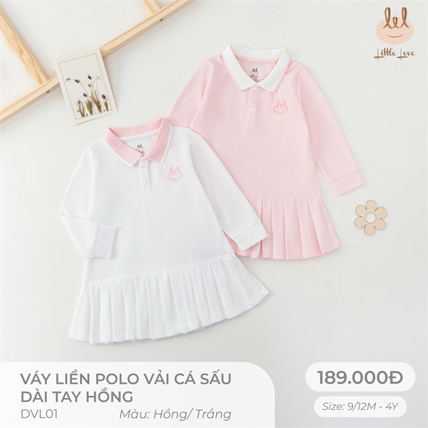 Váy liền polo cá sấu dài tay hồng dành cho bé Lil Little Love (DVL01)